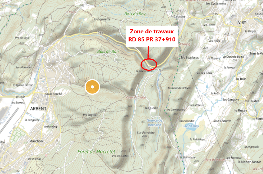 Travaux RD 85 entre Arbent et Viry du 23 mars au 7 mai 2026 :