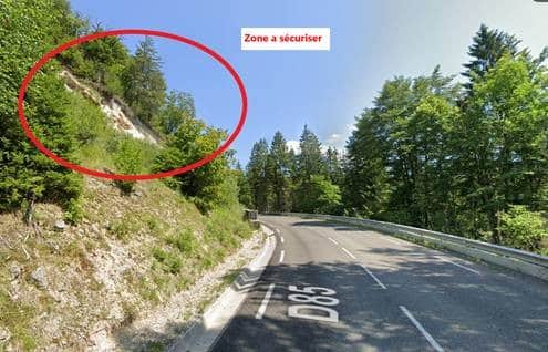 Ce chantier confié à l’entreprise CAN consiste à la sécurisation de la paroi rocheuse surplombant la route départementale 85.